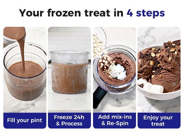 Create homemade frozen treats in three easy steps: prepare your base, freeze overnight, then process with one touch. Get smooth, delicious results every time.