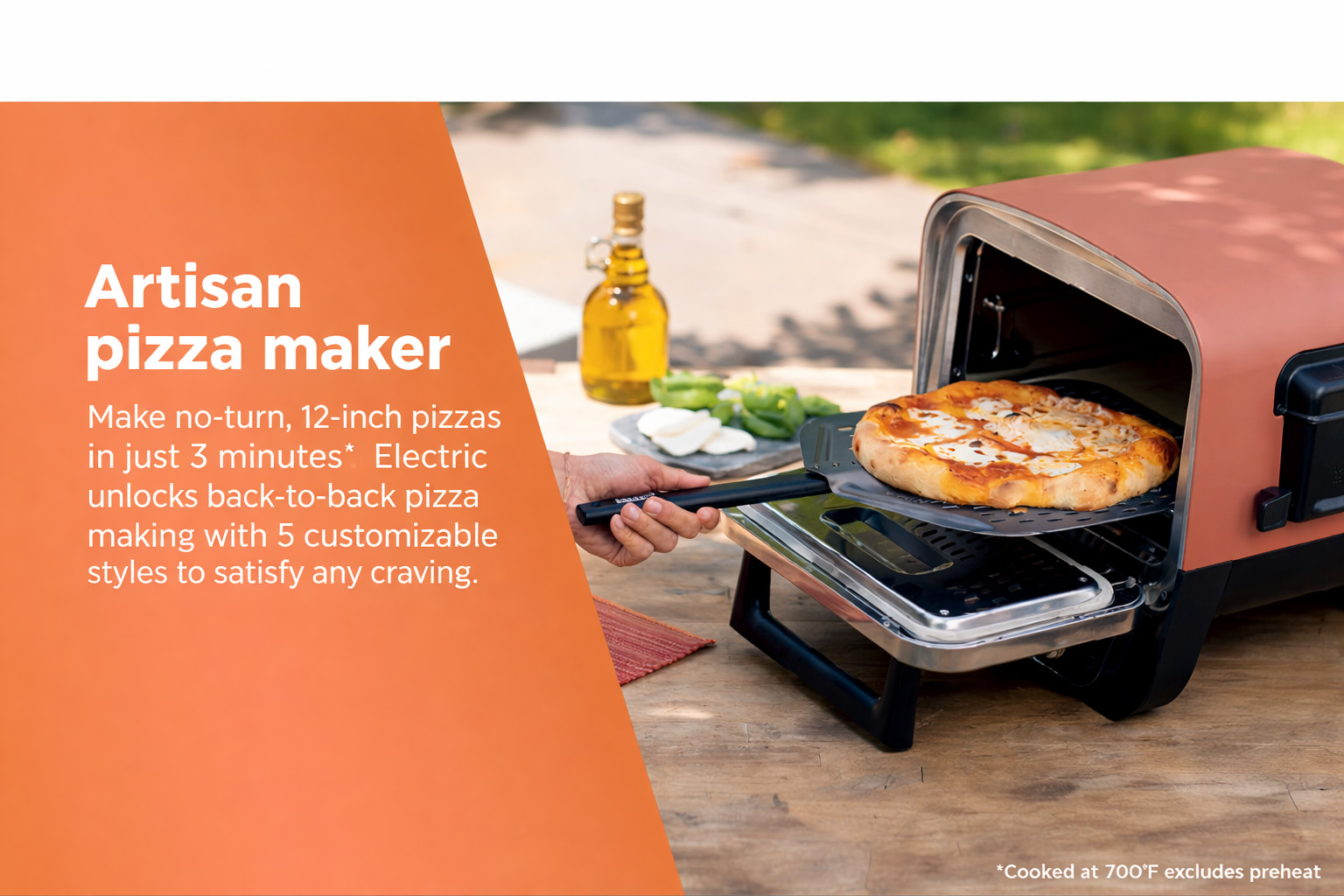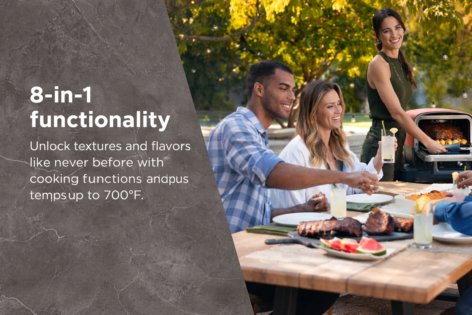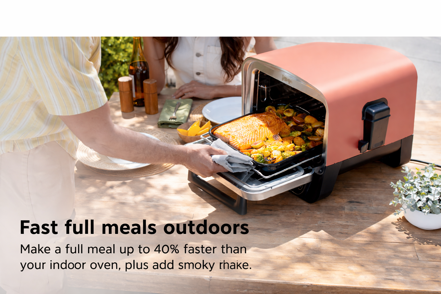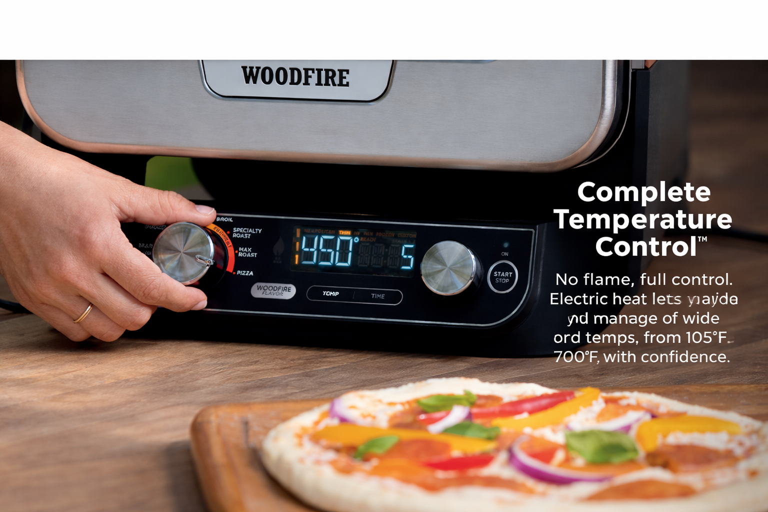 The Woodfire™ Outdoor Oven brings 8-in-1 versatility to your backyard, with a wide 105–700°F range for everything from artisan pizza to BBQ smoking. Bake, roast, broil, dehydrate, and more—all in one compact outdoor oven.